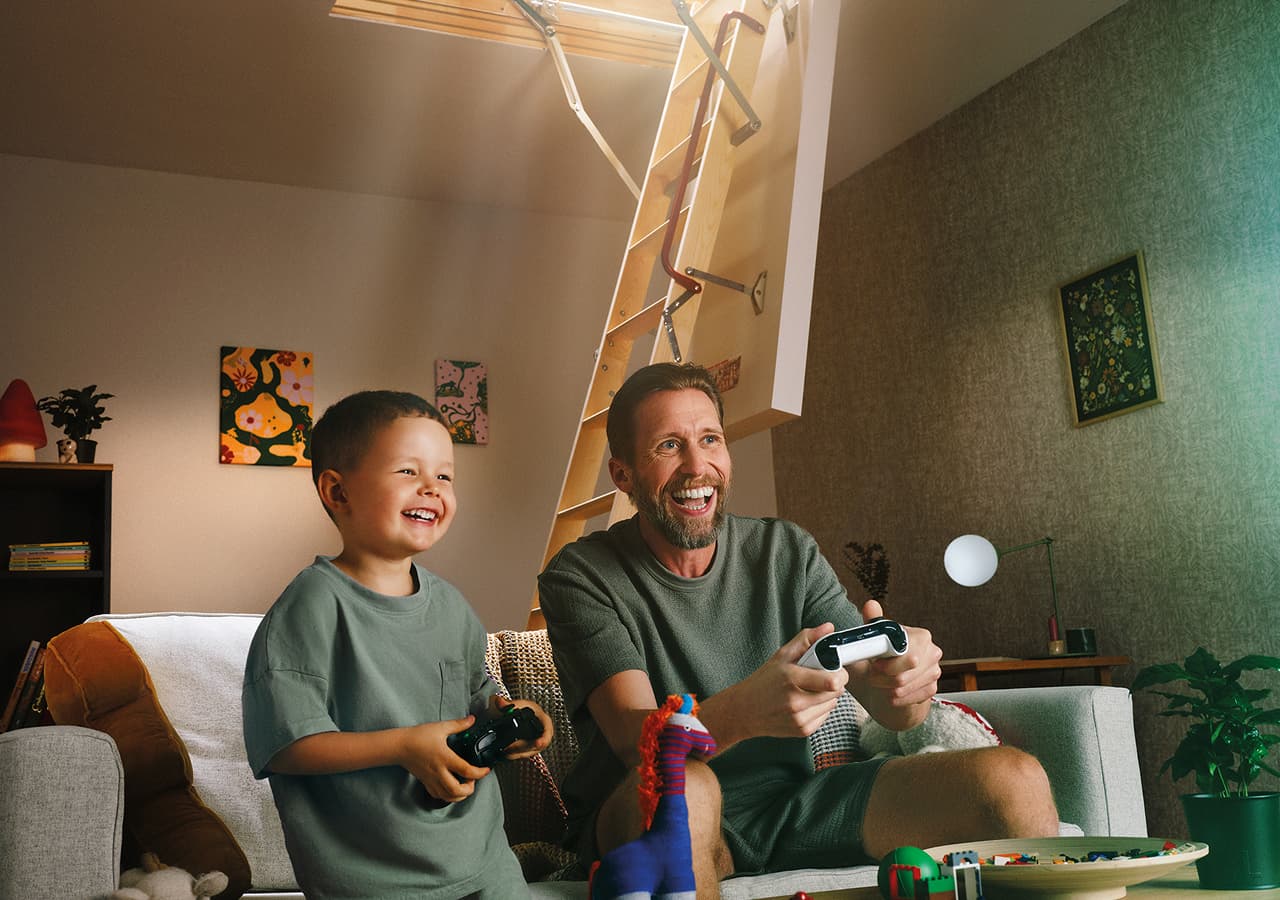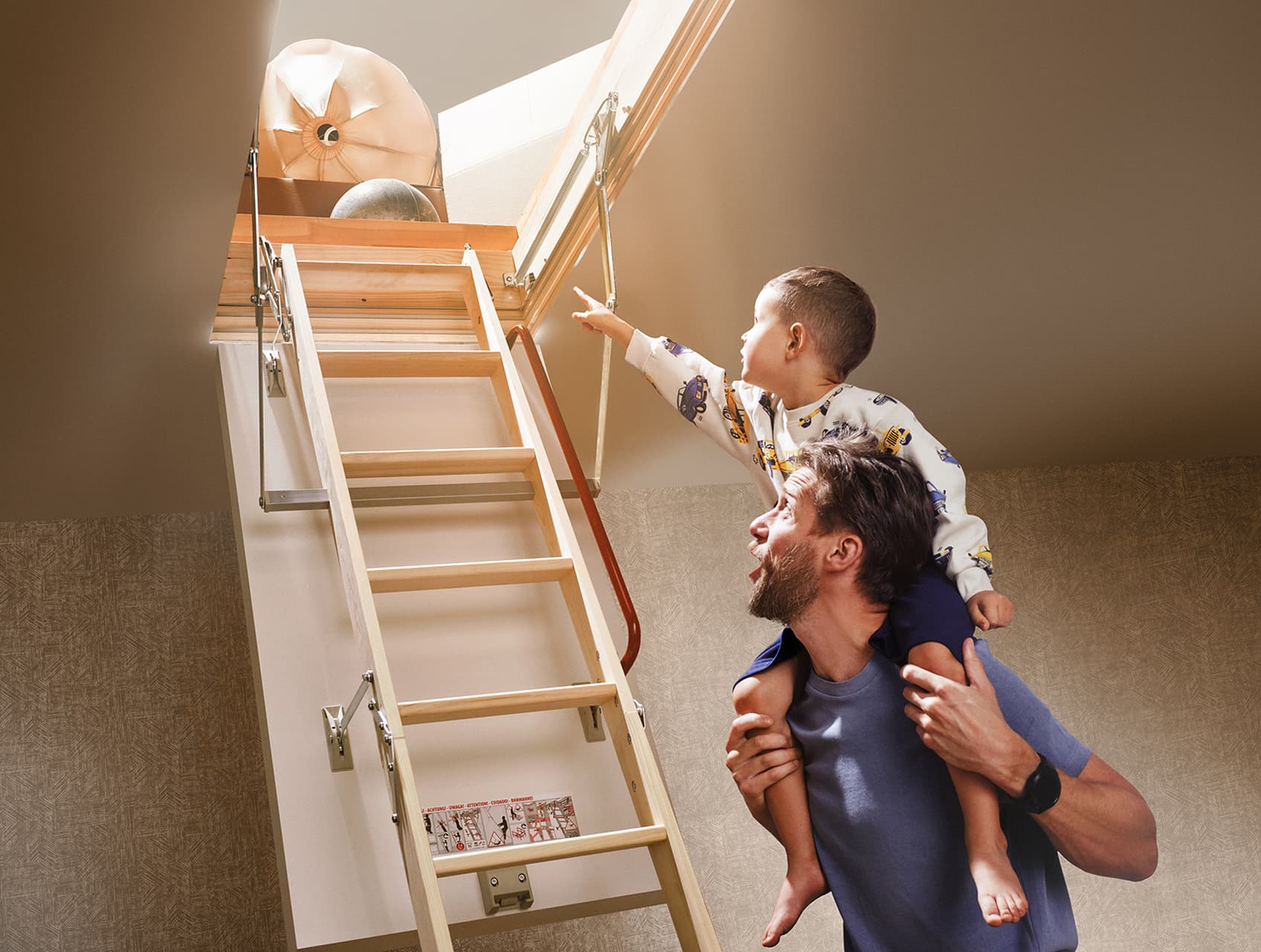 Strych w domu może być czymś więcej niż tylko zapasową przestrzenią do przechowywania. To miejsce, do którego wracają zabawki, wspomnienia oraz rzeczy odkładane „na później”. Schody GREENSTEP sprawiają, że dostęp do tej przestrzeni staje się prosty i naturalny. Otwierają się lekko, pozwalając bez wysiłku wnieść wszystko na górę, po czym równie dyskretnie znikają w suficie. Gdy są zamknięte, wnętrze odzyskuje spokój i porządek, pozostając gotowe na kolejne codzienne historie.