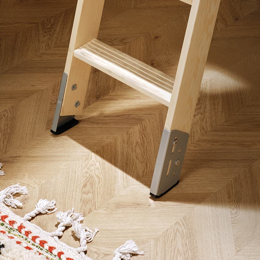 Ostatnie stopień drabinki umiejscowiony wysoko w świetle skrzynki ułatwiają pewne wejście na schody. Regulowane stopki i antypoślizgowe stopnie zwiększają stabilność podczas użytkowania.