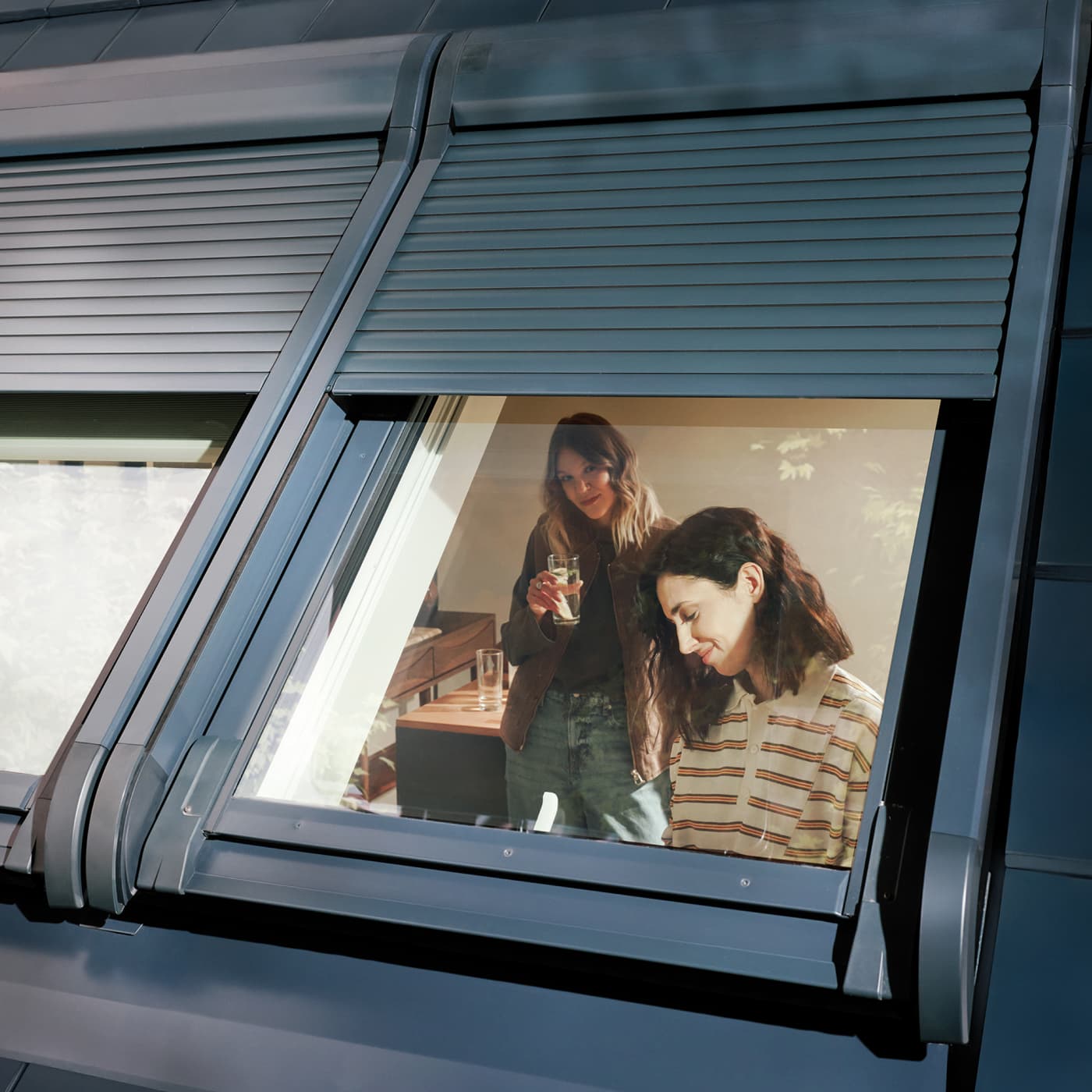 Zewnętrzne oblachowanie zaprojektowane we współpracy z Instytutem Wzornictwa Przemysłowego nadaje oknom GREENVIEW wyrazistą, współczesną formę. Trzy standardowe warianty kolorystyczne, w tym antracyt, podkreślają estetykę dachu.