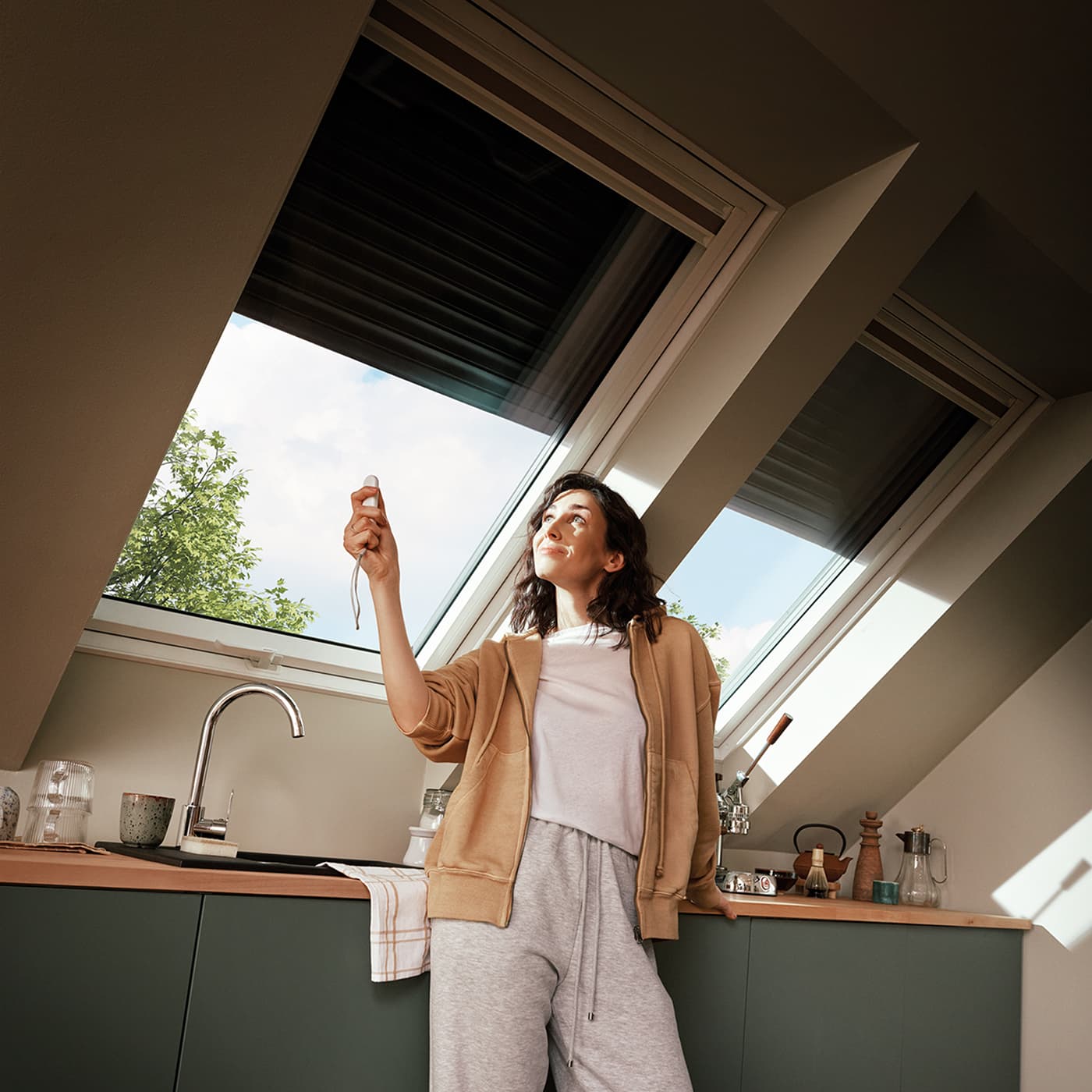Współczesne poddasze coraz częściej korzysta z rozwiązań, które pozwalają zarządzać przestrzenią bez konieczności bezpośredniej obsługi. Okna dachowe GREENVIEW dostępne w wersji elektrycznej wpisują się w ten sposób użytkowania. Sterowanie za pomocą pilota lub aplikacji umożliwia kontrolę otwierania i zamykania okna niezależnie od jego wysokości czy dostępności.