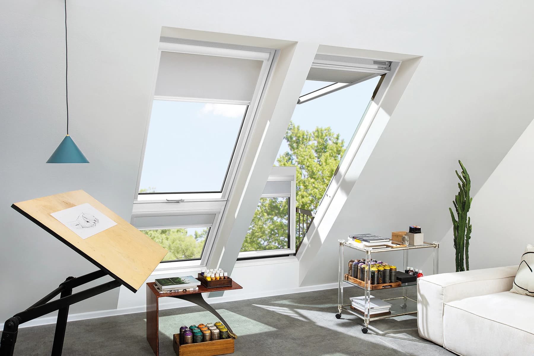 Nowoczesny design oblachowania, zaprojektowany we współpracy z Instytutem Wzornictwa Przemysłowego, podkreśla minimalistyczną estetykę okna. Trzy kolory – antracytowy (RAL 7016), czerny (RAL 9005) i szarobrązowy (RAL 7022) pozwalają na spójne dopasowanie do dachu i dodatków.
