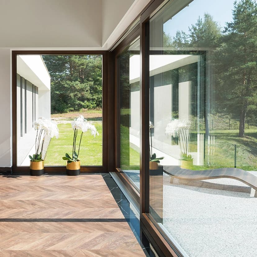 Drewno wykorzystywane w konstrukcji okien fasadowych wprowadza do wnętrz przyjemną estetykę oraz wysoką kulturę pracy materiału, który dobrze reaguje na zmienne warunki otoczenia. Starannie selekcjonowane elementy klejone warstwowo oraz wieloetapowa impregnacja wpływają na trwałość profili, a ochrona powierzchni realizowana przy użyciu powłok odpornych na wilgoć i promieniowanie UV pozwala zachować jakość i stabilność wymiarową nawet przy dużych przeszklonych powierzchniach.