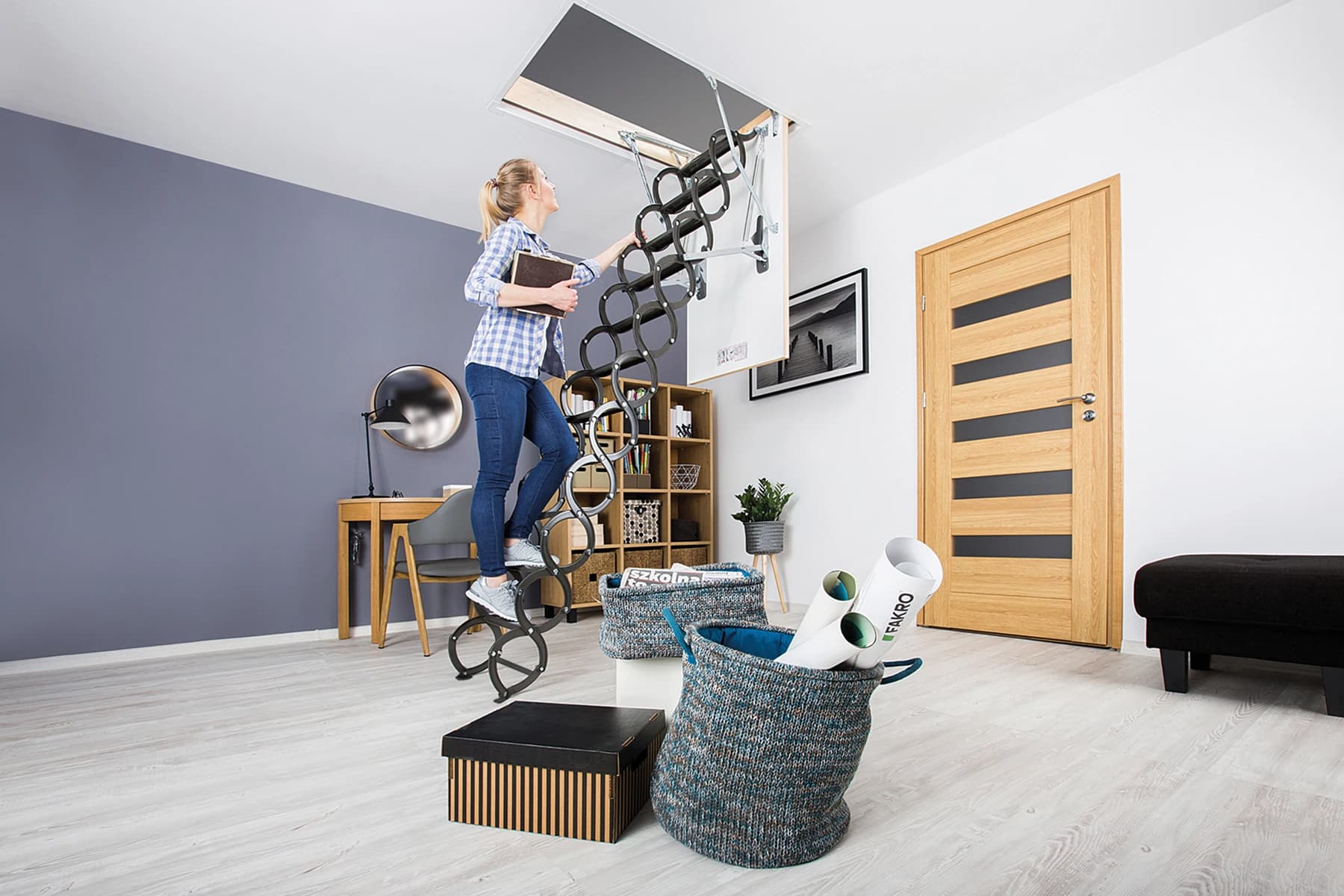 Specjalna nożycowa konstrukcja drabinki pozwala na kompaktowe złożenie schodów, dając tym samym możliwość zamontowania ich w niewielkich otworach., co czyni je doskonałym rozwiązaniem do niewielkich przestrzeni. Nawet w trudno dostępnych miejscach można z łatwością uzyskać wygodny dostęp do poddasza. Możliwość dodania dodatkowych stopni pozwala na dopasowanie do wysokosći pomieszczenia bez konieczności docinania, wyjątkowo łatwe dopasowanie do różnych wysokości pomieszczeń.