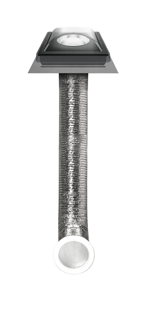 - SFF - świetlik z elastyczną rurą światłonośną, która pozwala w łatwy sposób ominąć ewentualne przeszkody konstrukcyjne. Długość rury wynosi 2,1m.