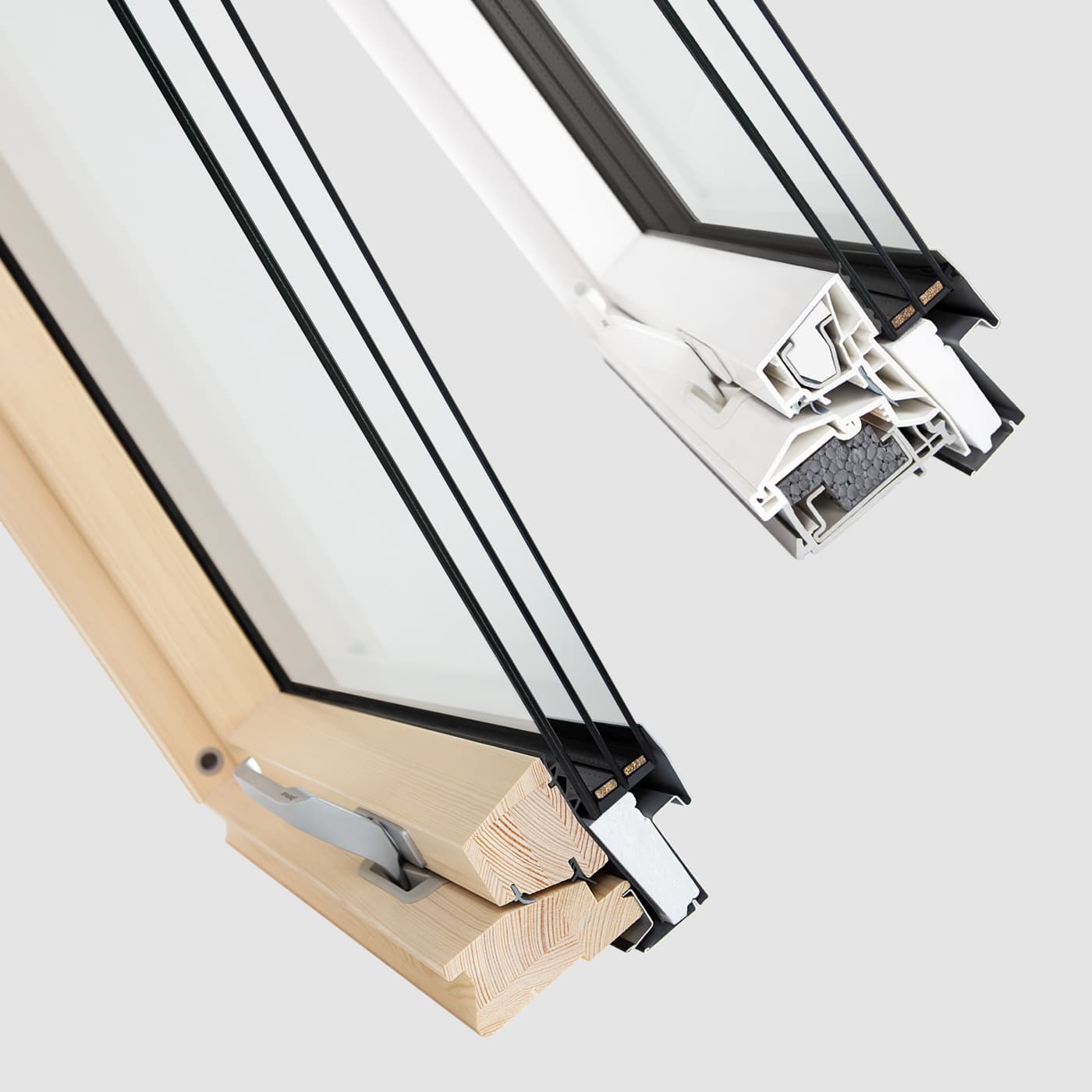 Cisza na poddaszu zaczyna się od konstrukcji okna, ponieważ to ona jako pierwsza przejmuje energię dźwięku. Hałas to drgania, które rozchodzą się w powietrzu i materiałach budowlanych, dlatego kluczowe znaczenie ma stabilność i jakość zastosowanych profili. Okna dachowe GREENVIEW dostępne są jako okna drewniane oraz okna PVC, co pozwala dopasować materiał do funkcji pomieszczenia i warunków użytkowych. Niezależnie od wybranego wariantu konstrukcja okna została zaprojektowana z myślą o trwałości i stabilności pracy. Zarówno profile drewniane, jak i PVC tworzą solidną ościeżnicę oraz skrzydło, które stanowią podstawę dla rozwiązań wpływających na szczelność okna i jego parametry użytkowe, w tym izolacyjność akustyczną.