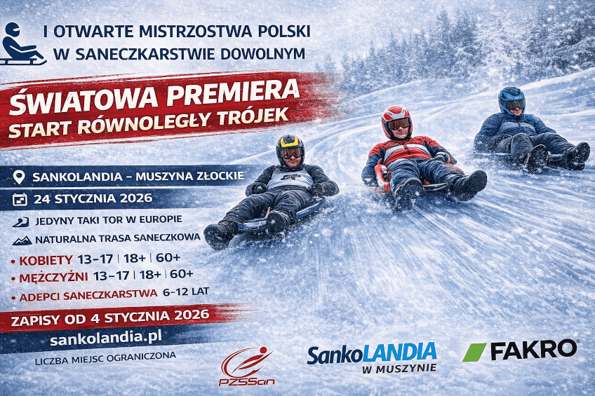 Zostaliśmy partnerem I Otwartych Mistrzostw Polski w Saneczkarstwie Dowolnym, które odbędą się 24 stycznia 2026 roku na obiekcie Sankolandia w Muszynie Złockiem. Zawody zostały zatwierdzone przez Polski Związek Sportów Saneczkowych i wpisane do oficjalnego kalendarza Polskiego Związku Sportów Saneczkowych.