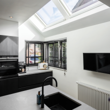 Właściciele tego nowoczesnego domu w Groesbeek w Holandii niedawno odnowili swoją kuchnię. Znajdujące się w niej okna narożne nie wpuszczały do środka zbyt wielu promieni słonecznych. Postanowili więc wykorzystać oryginalny dach na zamontowanie w nim dodatkowych okien, aby doświetlić i rozjaśnić wnętrze. Okna dachowe zamontowane wysoko w stropie wpuszczają maksymalnie dużo światła, które daje radość i pobudza do pracy. Zobaczcie jak wygląda teraz miejsce gdzie powstają pyszne kulinaria.
