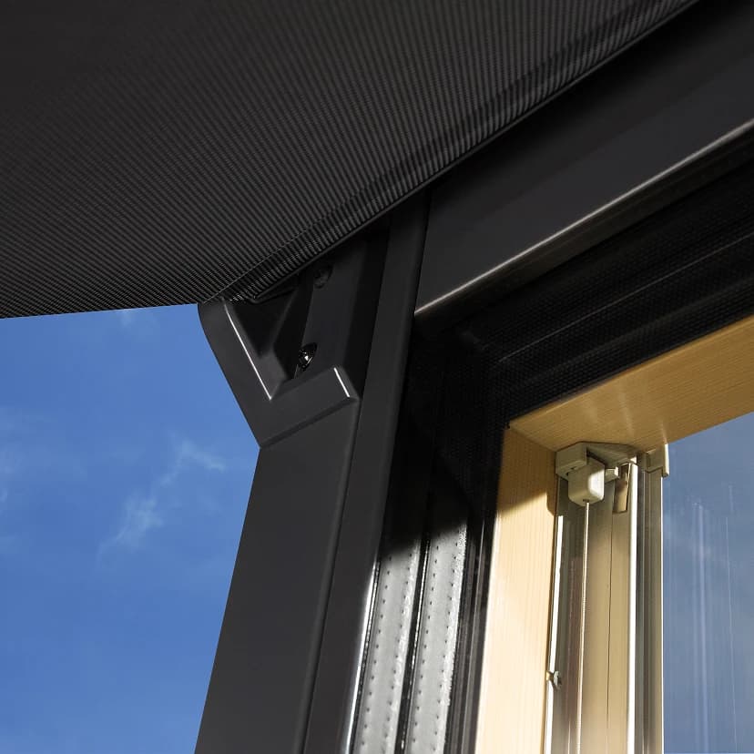 Mechanizm ręcznej obsługi jest niezwykle intuicyjny i nie wymaga skomplikowanych czynności. Markiza rozwijana jest za pomocą dłoni lub dołączonego drążka o długości 80 cm, który pozwala na wygodne sterowanie także w przypadku wyżej zamontowanych okien. Dzięki specjalnym otworom w kształcie „fasolek” można precyzyjnie regulować napięcie tkaniny, co zapewnia idealne dopasowanie osłony i estetyczny wygląd. Półprzezroczysta struktura siatki umożliwia jednoczesne korzystanie z naturalnego światła i widoku na zewnątrz, zachowując przy tym prywatność w ciągu dnia. Co ważne, markiza jest kompatybilna z oknami GREENVIEW oraz starszymi generacjami, co czyni ją uniwersalnym rozwiązaniem dla różnych typów poddaszy.