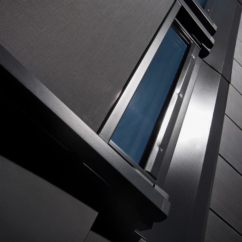 Markiza AMZ Komfort WiFi Tuya to nie tylko funkcjonalność, ale także wyjątkowy design. Smukła aluminiowa kaseta została zaprojektowana tak, aby harmonijnie komponować się ze wszystkimi nowoczesnymi pokryciami dachowymi. Standardowo dostępna jest w antracytowym (RAL 7016) i szarobrązowym (RAL 7022) kolorze, ale dla jeszcze większej personalizacji możesz zamówić wersję w czarnym (RAL 9005). To rozwiązanie, które łączy nowoczesny minimalizm z trwałością i doskonale wpasowuje się w estetykę Twojego dachu.