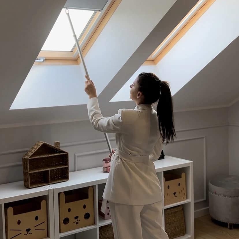 Już nie musisz sięgać po drabinę ani ryzykownie wspinać się na krzesło, by wygodnie otworzyć okno w płaskim dachu lub zasłonić je roletą. Dzięki uniwersalnemu drążkowi teleskopowemu ZSD, który ma aż 330 cm długości, szybko i bez wysiłku obsłużysz swoje okna DMC, DMF oraz zamontowane do nich rolety wewnętrzne. Wystarczy jeden ruch, aby zapewnić sobie świeże powietrze lub ochronę przed słońcem. Proste rozwiązanie, które ułatwi Ci codzienne korzystanie z okien dachowych i poprawi komfort w Twoim domu.