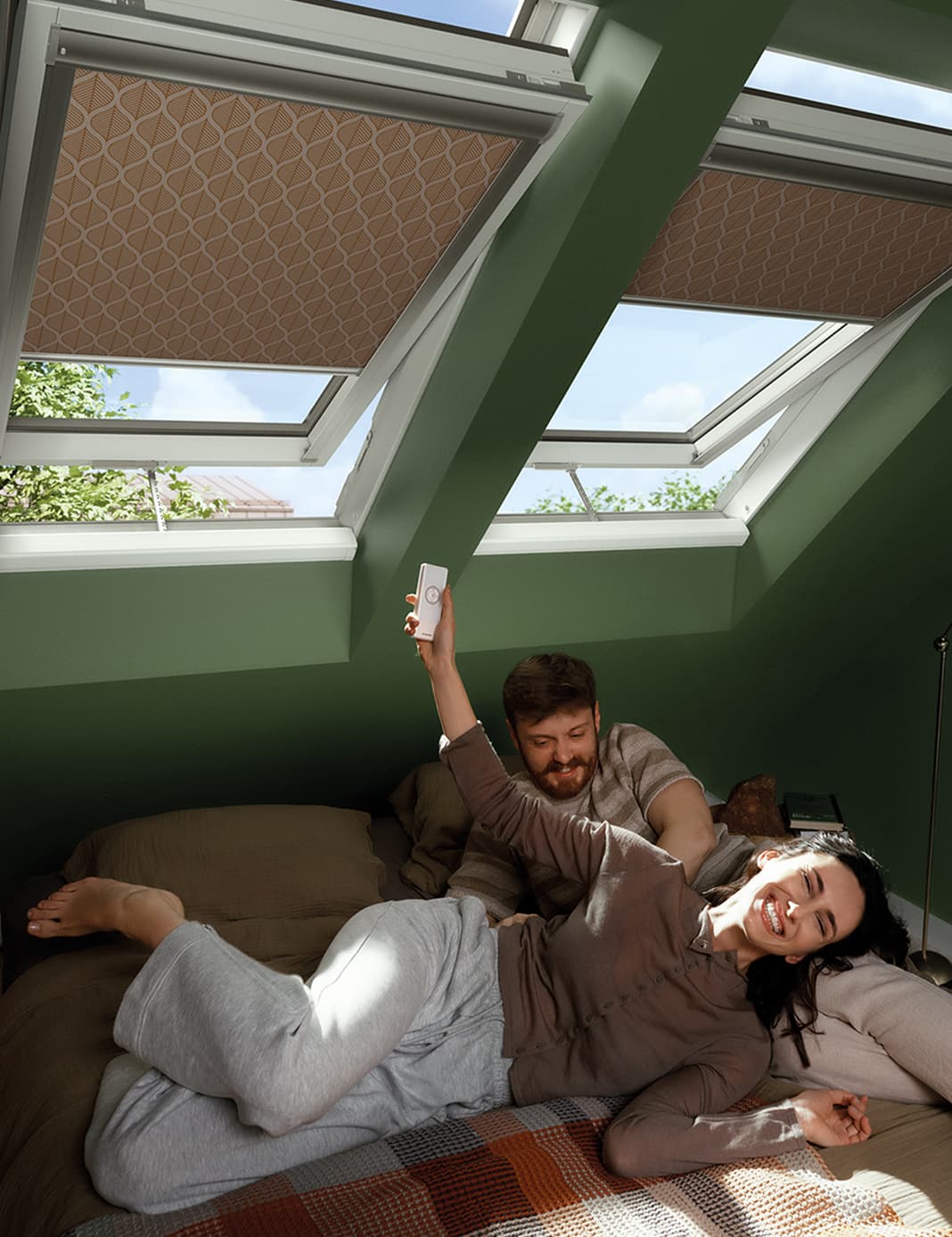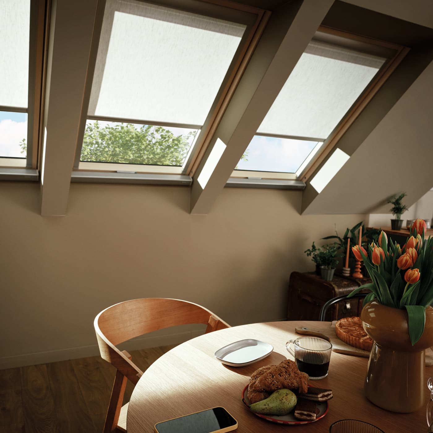 Współczesne poddasze coraz częściej korzysta z rozwiązań, które pozwalają zarządzać przestrzenią bez konieczności bezpośredniej obsługi. Okna dachowe GREENVIEW dostępne w wersji elektrycznej wpisują się w ten sposób użytkowania. Sterowanie za pomocą pilota lub aplikacji umożliwia kontrolę otwierania i zamykania okna niezależnie od jego wysokości czy dostępności.