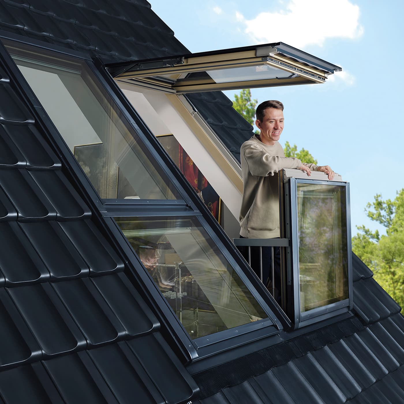 Do wyboru są okna dachowe obrotowe i uchylno-obrotowe, a także rozwiązania balkonowe oraz tarasowe. Obsługa manualna lub sterowanie Smart Home pozwalają dopasować sposób użytkowania do codziennych potrzeb. Nowoczesny design oraz oblachowanie w trzech standardowych wariantach kolorystycznych ułatwiają dopasowanie okien GREENVIEW do architektury domu.