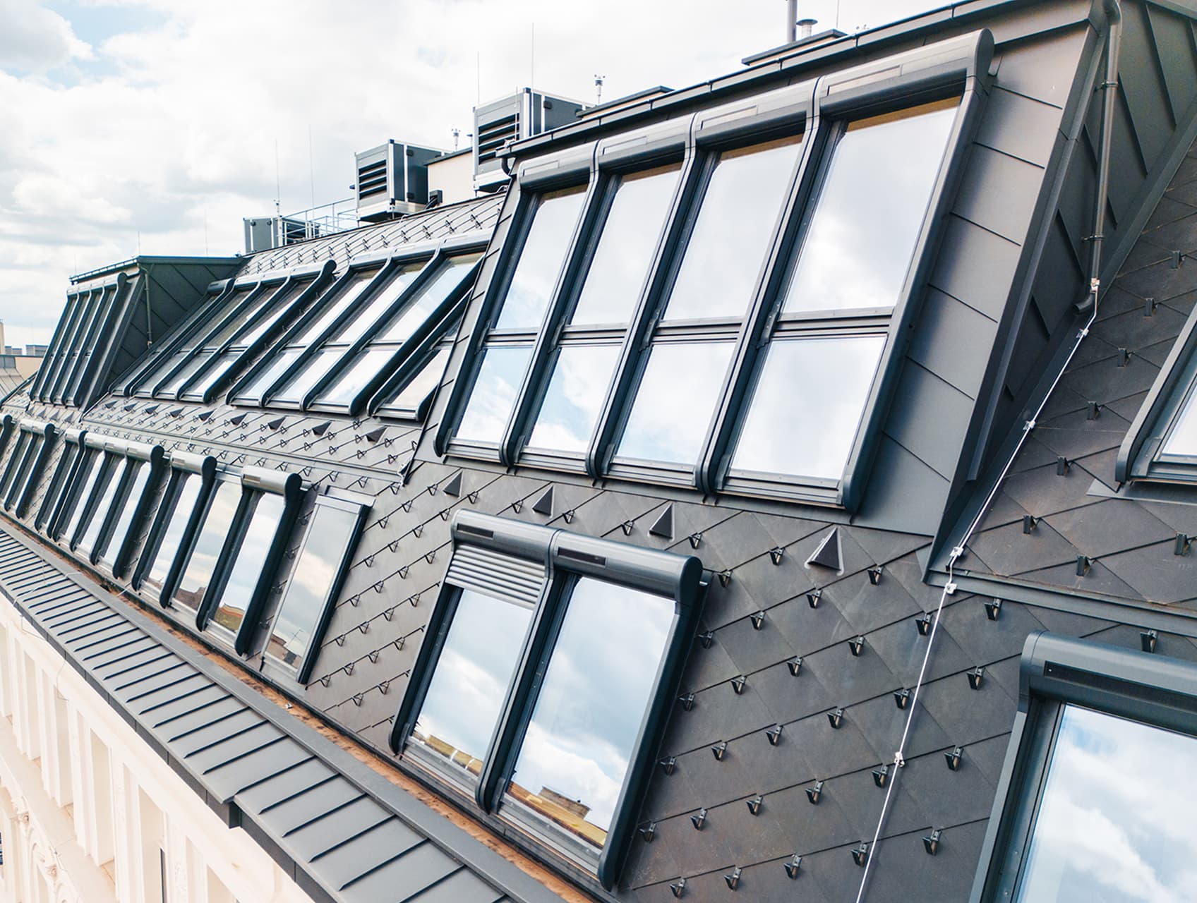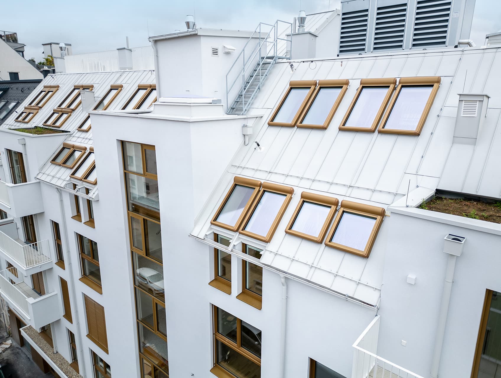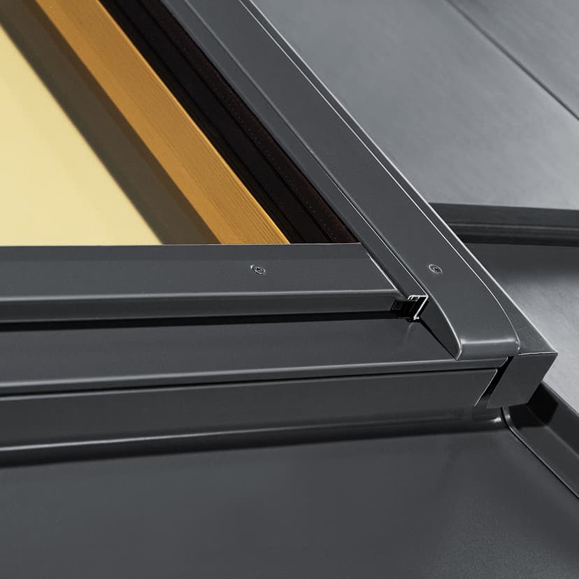 Zewnętrzne oblachowanie zaprojektowane we współpracy z Instytutem Wzornictwa Przemysłowego nadaje oknom GREENVIEW wyrazistą, współczesną formę. Trzy standardowe warianty kolorystyczne, w tym antracyt, podkreślają estetykę dachu.