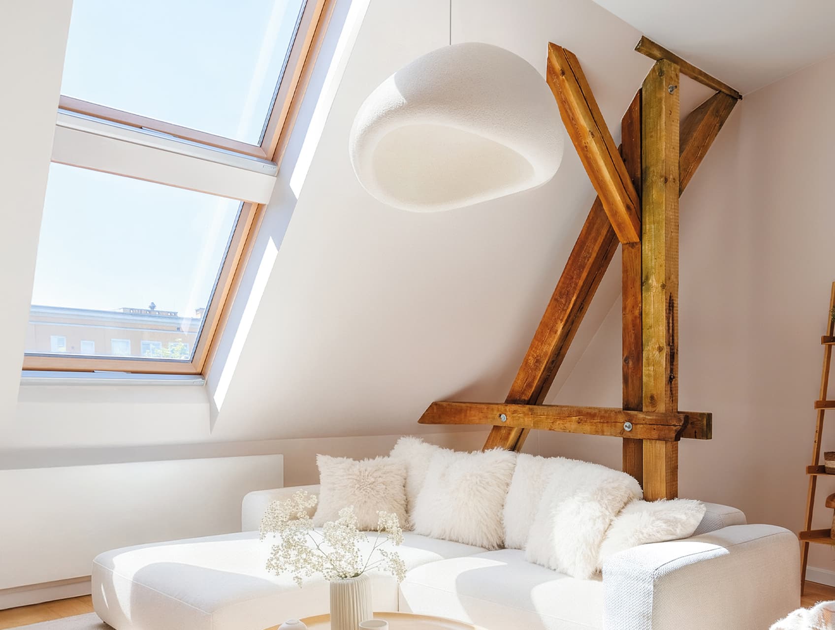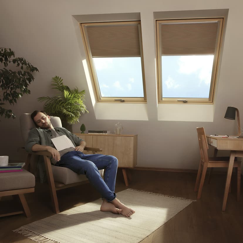 Trzyszybowy pakiet P50 oraz dopracowana konstrukcja okna skutecznie ograniczają przenikanie hałasu z zewnątrz, zapewniając przyjazną ciszę na poddaszu.
