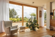 Drzwi podnoszono-przesuwne mimo swoich gabarytów są niezwykle komfortowe w użytkowaniu, a olbrzymie przeszklenia wpuszczają do wnętrza jeszcze więcej promieni słonecznych.