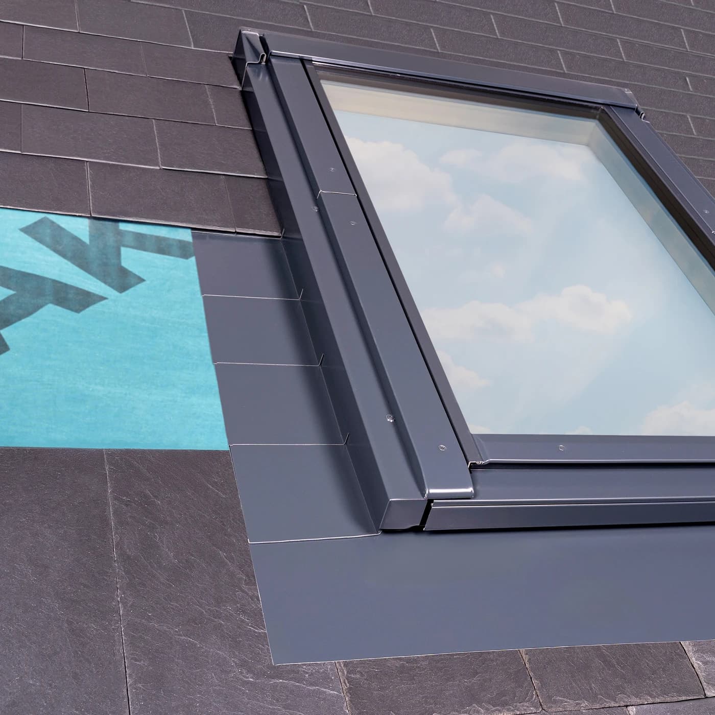 Montaż kołnierza ELV-T Thermo _X00 przebiega szybko oraz bezproblemowo – elementy systemowe z dodatkową termoizolacją dokładnie dopasowują się do okna i łuskowych pokryć dachowych. Dzięki temu praca dekarza jest prostsza, a połączenie szczelne i energooszczędne. Standardowo przeznaczony do montażu pojedynczego okna, dostępny także w wersjach modułowych do zespoleń. Zakres montażu obejmuje dachy o spadku od 15° do 90°, co pozwala na szerokie zastosowanie.