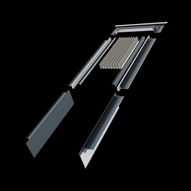 Kołnierz uszczelniający EOV-T Thermo _X00 to rozwiązanie do zastosowań specjalnych, dedykowane oknom tarasowym serii GREENVIEW. Umożliwia szczelne i trwałe połączenie konstrukcji z różnymi rodzajami pokryć dachowych – płaskimi i profilowanymi – w dachach o spadku od 35° do 55°. Dopracowana budowa gwarantuje niezawodną ochronę przed wodą i wiatrem, a precyzyjne dopasowanie elementów zapewnia estetyczne wykończenie połaci. Tworzy spójny, nowoczesny zestaw z oknem tarasowym, zachowując jego elegancki charakter. Kołnierz dostępny jest w trzech kolorach – antracyt (RAL 7016), szarobrązowym (RAL 7022) oraz czarny (RAL 9005) – co ułatwia dopasowanie do dachu i okien FAKRO.