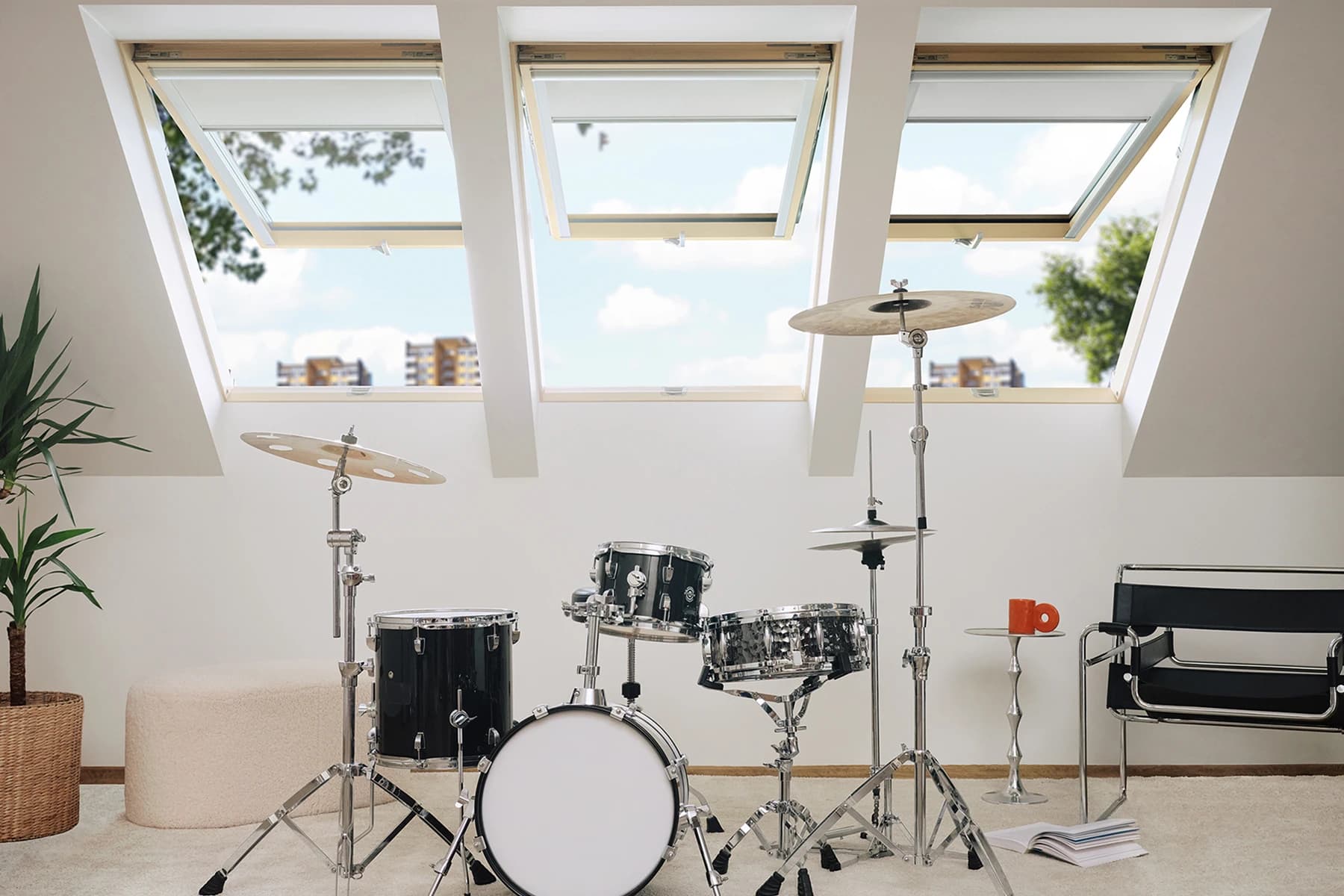 Nowoczesny design oblachowania, zaprojektowany we współpracy z Instytutem Wzornictwa Przemysłowego, podkreśla minimalistyczną estetykę okna. Trzy kolory – antracytowy (RAL 7016), czerny (RAL 9005) i szarobrązowy (RAL 7022) pozwalają na spójne dopasowanie do dachu i dodatków.