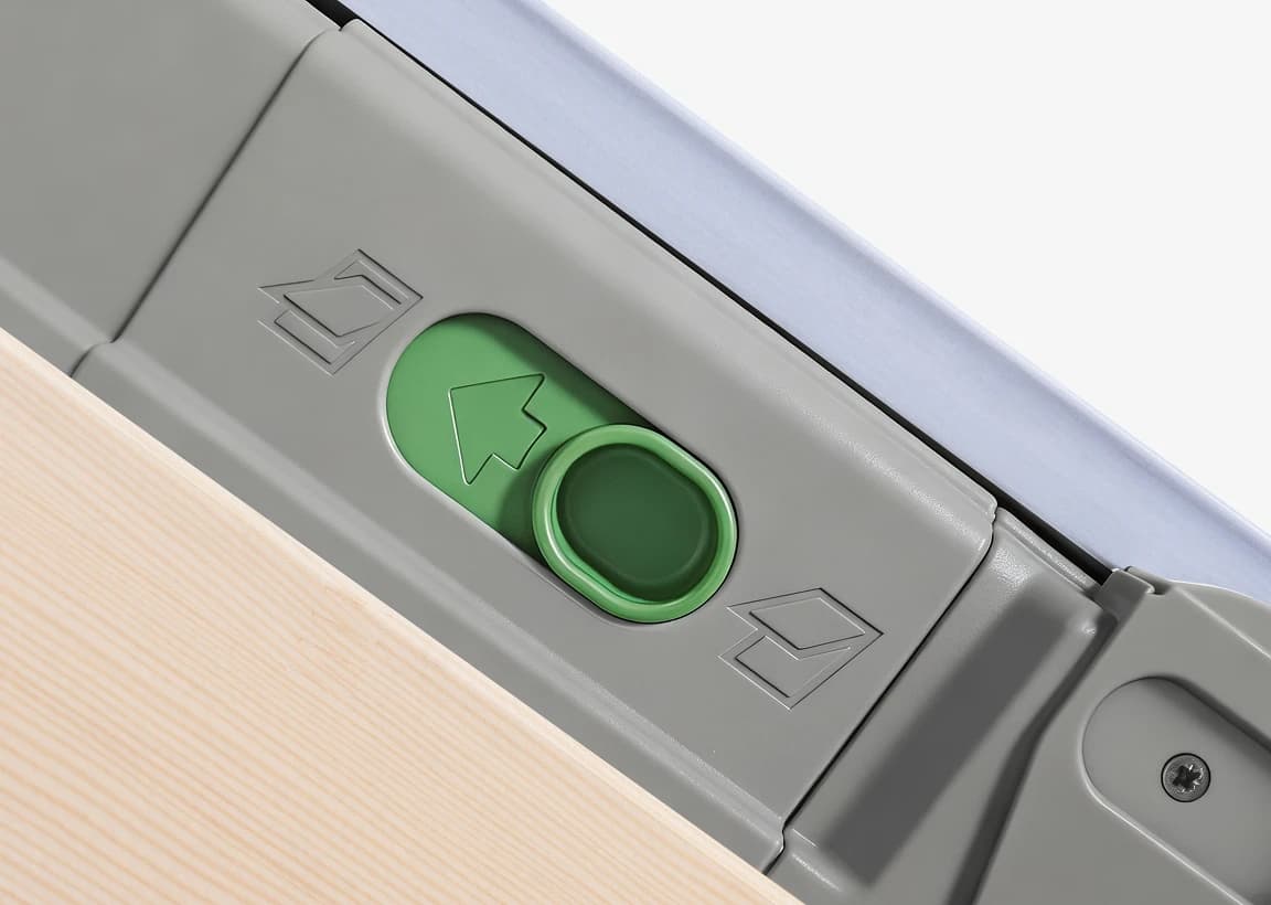 Przełącznik preSelect® umożliwia szybkie przełączanie trybu otwierania skrzydła – z uchylnego na obrotowy lub odwrotnie. Znajduje się w bocznej części ościeżnicy, co pozwala wygodnie zmienić funkcję okna bez potrzeby jego otwierania. Tryb uchylny zapewnia naturalną wentylację i komfortowe doświetlenie wnętrza, a jednocześnie umożliwia swobodne podziwianie widoków. Funkcja obrotowa ułatwia mycie szyby i pełen dostęp do okna.