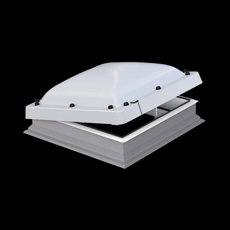 Czasza okna została wykonana z wytrzymałego poliwęglanu, który cechuje się wysoką odpornością na uderzenia oraz działanie niekorzystnych warunków atmosferycznych. Jej matowa struktura umożliwia doświetlenie wnętrza łagodnym, rozproszonym światłem, jednocześnie ograniczając przenikanie szkodliwego promieniowania UV. Dodatkowe powłoki ochronne naniesione po obu stronach powierzchni zwiększają trwałość materiału i zapewniają estetyczny wygląd przez długi czas użytkowania.