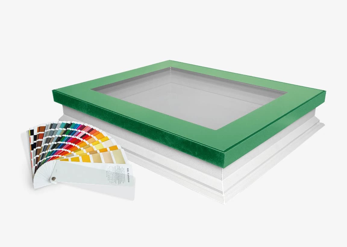 Okno do dachów płaskich D_F to połączenie funkcjonalności i eleganckiego designu, inspirowanego współczesną architekturą. W standardzie zastosowano szybę z czarnym stepem, który podkreśla minimalistyczny charakter i doskonale komponuje się z bryłą nowoczesnych budynków. Dodatkowo okno dostępne jest w wersji ColourLine, która umożliwia personalizację dzięki szerokiej palecie 200 kolorów RAL Classic, zapewniając spójność z barwą dachu i charakterem budynku.