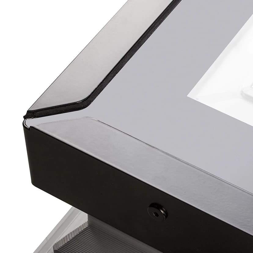 Płaskie wykończenie z segmentem szklanym nadaje konstrukcji elegancki, minimalistyczny wygląd i sprawia, że harmonijnie komponuje się z architekturą budynku. Fabrycznie zamontowany płaski element znacząco skraca czas instalacji i ułatwia prawidłowe osadzenie produktu w dachu. Segment składa się z aluminiowego profilu w kolorze RAL 9005 połączonego z szybą hartowaną, z nadrukiem w kolorze RAL 9010. Starannie zaprojektowana geometria profili zwiększa powierzchnię przeszklenia i zapewnia wysoką przepuszczalność światła, co przekłada się na naturalne i równomierne doświetlenie wnętrz.