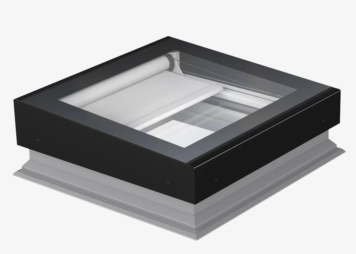 Zastosowanie przeszklenia w płaskim dachu pozwala wprowadzić naturalne światło do wnętrz pozbawionych tradycyjnych okien. Otwierane ręcznie okno DMZ-A P2 skutecznie rozjaśnia pomieszczenia i nadaje budynkowi wyjątkowy charakter. Płaski segment szklany ze spadkiem powierzchni został fabrycznie zintegrowany z konstrukcją okna, co skraca czas montażu i zapewnia wysoką szczelność. Całość harmonijnie komponuje się z powierzchnią dachu, podkreślając minimalistyczną, elegancką estetykę zarówno w budynkach mieszkalnych, jak i w obiektach użyteczności publicznej.