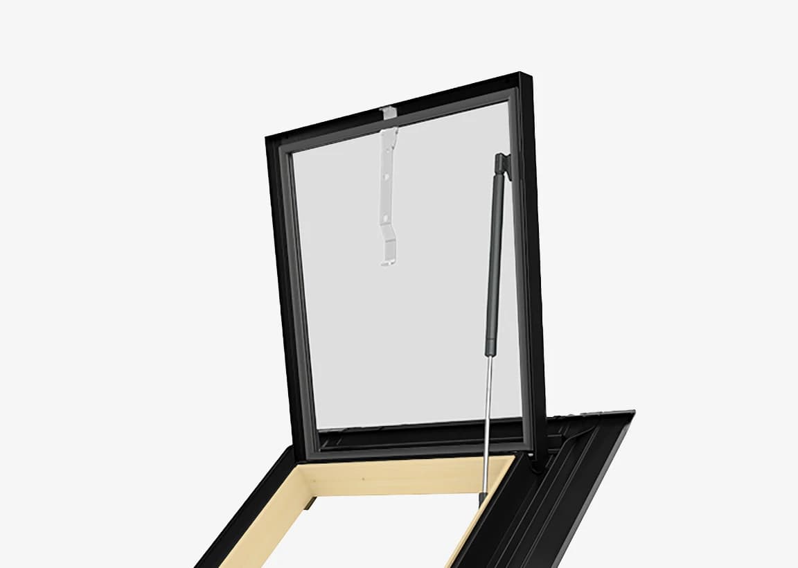 Wykonane z wytrzymałego profilu aluminiowego w kolorze czarnym RAL 9005. Zaprojektowane z myślą o trwałości, bezpieczeństwie i wygodzie użytkowania. Skrzydło wyłazu WGI wyposażono w uszczelkę obwodową, która poprawia szczelność wyłazu. Dzięki konstrukcji klapowej otwieranej do góry oraz sprężynie gazowej podnoszenie skrzydła jest lekkie i bezwysiłkowe, a mechanizm bezpiecznie utrzymuje je w pozycji otwartej.