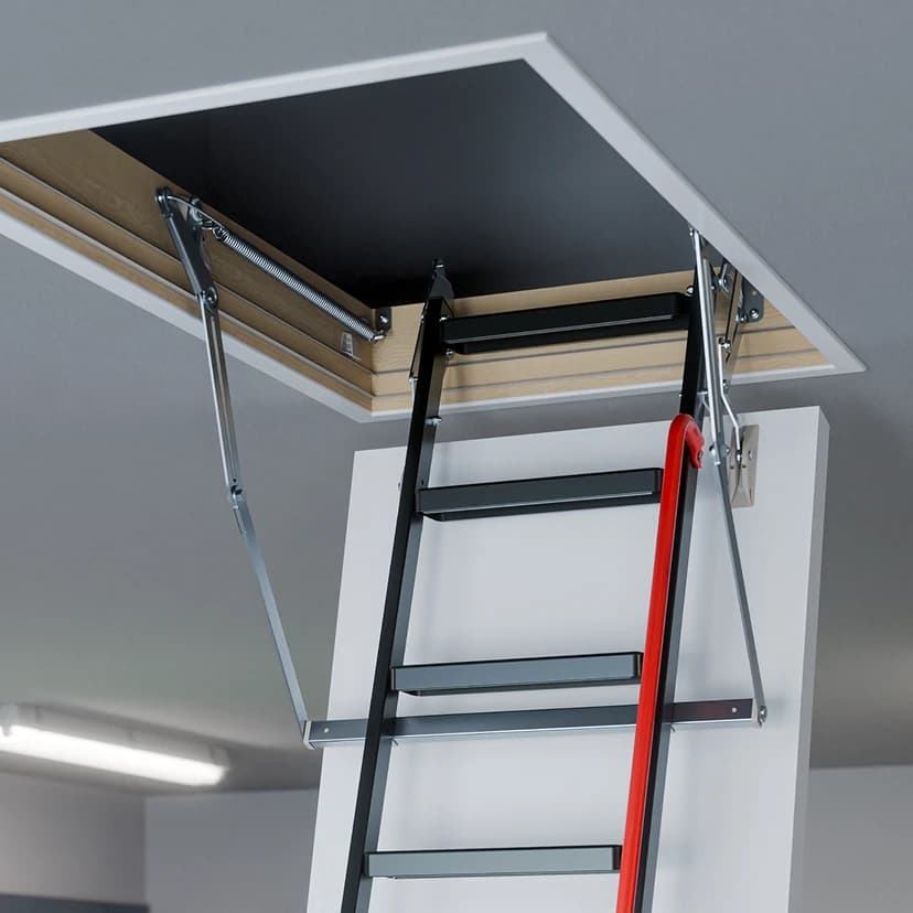 Schody LME Energy Efficient z generacji GREENSTEP to idealne rozwiązanie dla każdego, kto szuka solidności i bezpieczeństwa w codziennym użytkowaniu Metalowe 3-segmentowe schody to praktyczne rozwiązanie, które sprawia, że dostęp do strychu staje się wygodny i bezpieczny. Dzięki solidnej konstrukcji i przemyślanej budowie, montaż schodów jest szybki, a samo użytkowanie komfortowe. To idealny wybór dla tych, którzy szukają niezawodności i wygody na co dzień.