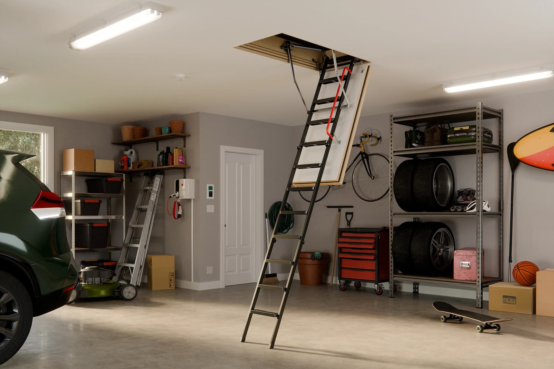 Schody strychowe LMF60 łączą funkcjonalność z estetyką dzięki swojej eleganckiej białej klapie, która doskonale komponuje się z różnymi stylami wnętrz. To rozwiązanie nie tylko praktyczne, ale również stylowe, które jest prawie nie do dostrzerzenia po zamknięciu. Idealne dla tych, którzy nie chcą iść na kompromis między bezpieczeństwem a designem, gwarantując, że zamknięte schody wpasują się w każdy design.