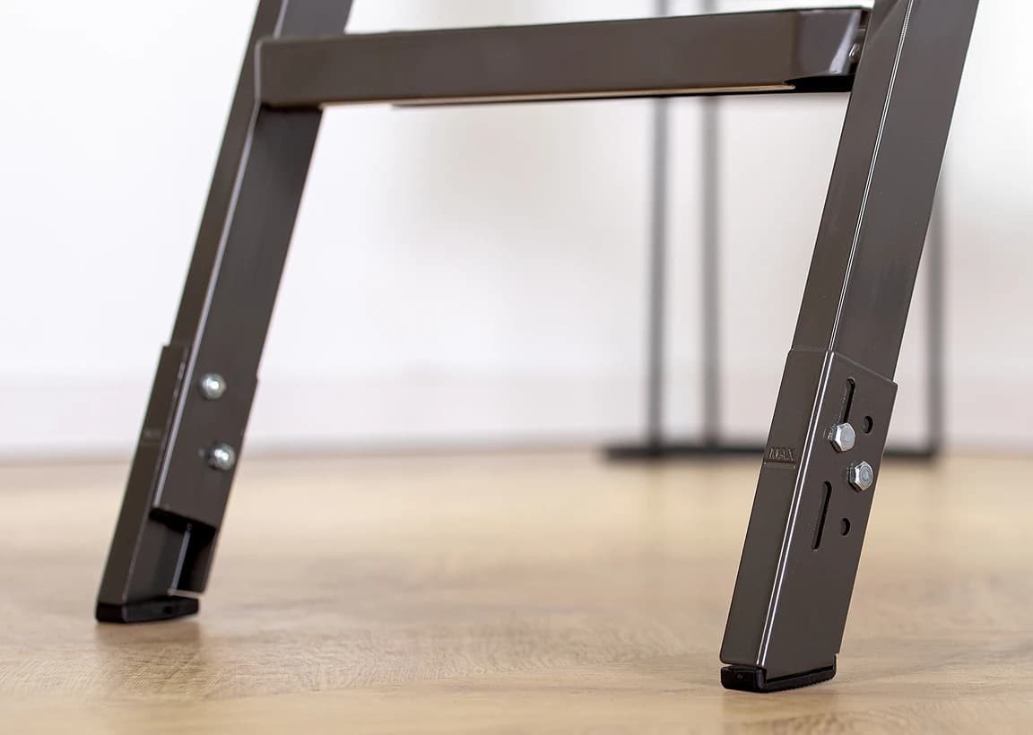 Stopki w schodach LMT Super Thermo są zaprojektowane tak, aby zapewnić maksymalną stabilność i bezpieczeństwo. Dzięki możliwości regulacji, łatwo dostosujesz drabinkę do nierówności podłoża, co sprawia, że schody idealnie pasują do każdej wysokości pomieszczenia. To prosty, ale skuteczny sposób na zapewnienie sobie i swojej rodzinie bezpieczeństwa podczas korzystania ze schodów.