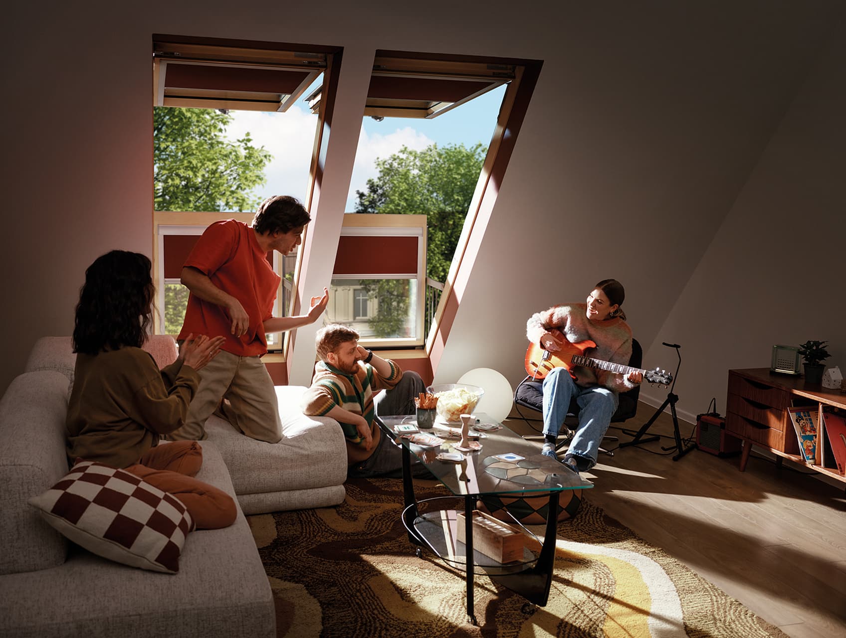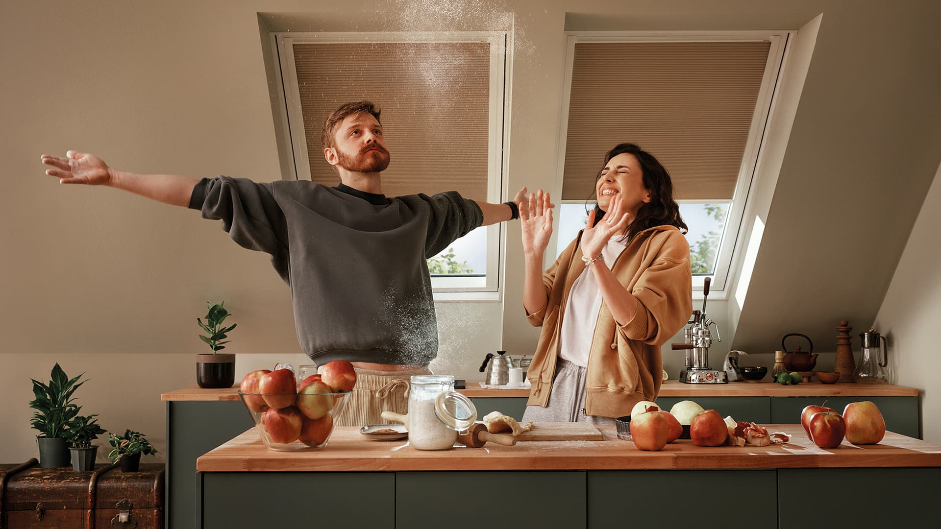 Każde wnętrze ma swój rytm i swoje chwile. W tych realizacjach okna dachowe GREENVIEW oraz dodatki do okien dachowych FAKRO stają się tłem dla codziennych scen — porannego światła na drewnianej podłodze, rozmów przy stole, spokojnych wieczorów pod skosami. Rolety wewnętrzne, markizy i rolety zewnętrzne pomagają nadać tym momentom właściwą oprawę, budując komfort oraz atmosferę. Zobacz, jak z naturalnego światła i dobrze dobranych detali powstaje osobista mozaika wspomnień.