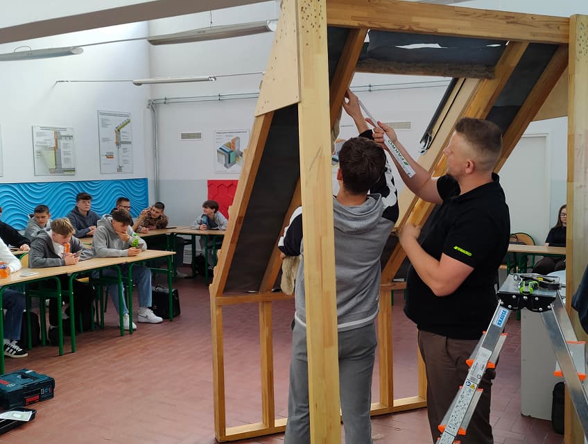 FAKRO aktywnie wspiera szkoły branżowe i techniczne, przygotowując uczniów do realnej pracy z naszymi produktami. Współpracujemy z klasami o profilu dekarskim, budowlanym, stolarki otworowej i automatyki, oferując patronat, materiały edukacyjne, gadżety oraz zaproszenia na wydarzenia branżowe. Organizujemy bezpłatne warsztaty praktyczne z wykorzystaniem profesjonalnych narzędzi i produkty FAKRO. Dzięki temu uczniowie zdobywają praktyczne umiejętności montażowe, a nauczyciele certyfikaty i merytoryczne wsparcie.