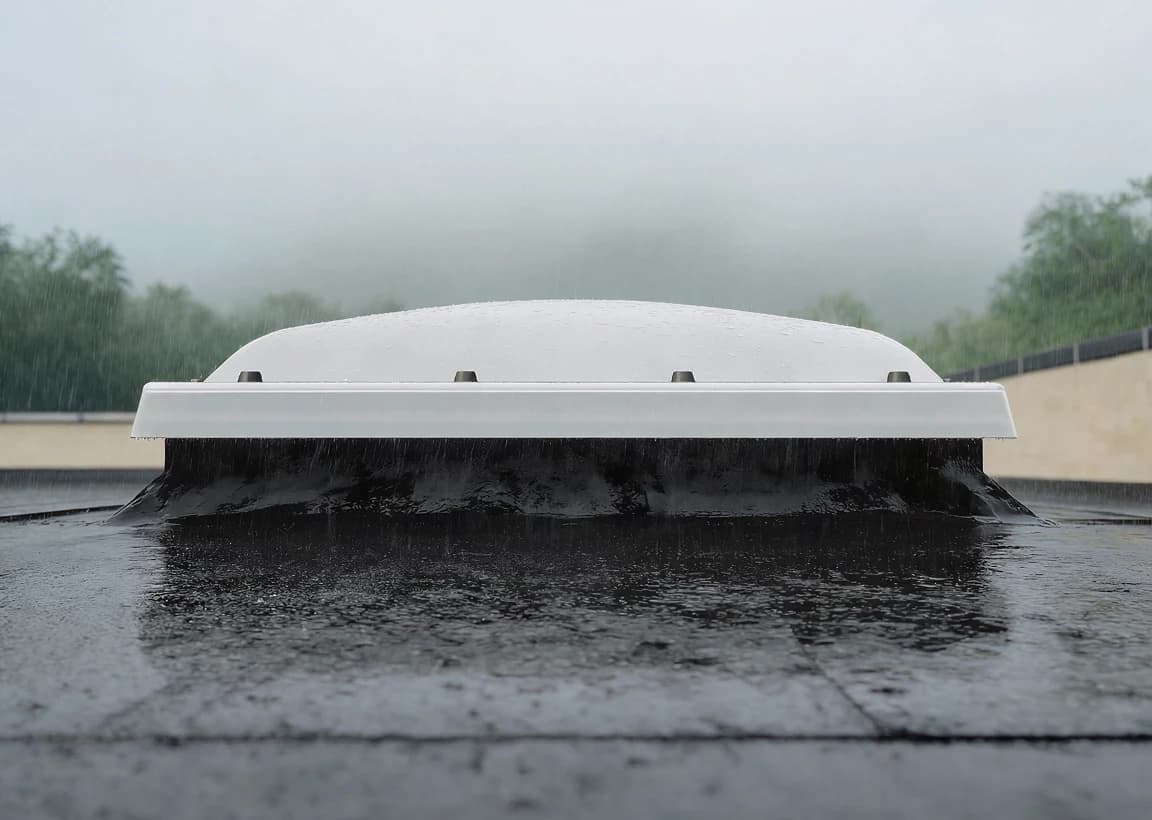 Matowa kopuła z odpornego na uderzenia poliwęglanu chroni przed deszczem, śniegiem, gradem oraz promieniowaniem UV. Wysoka odporność na czynniki atmosferyczne zapewnia długowieczność i niezmienny wygląd produktu przez lata. To element konstrukcji, który pełni funkcję praktyczną i dekoracyjną jednocześnie, wpisując się w nowoczesne wymagania architektoniczne.