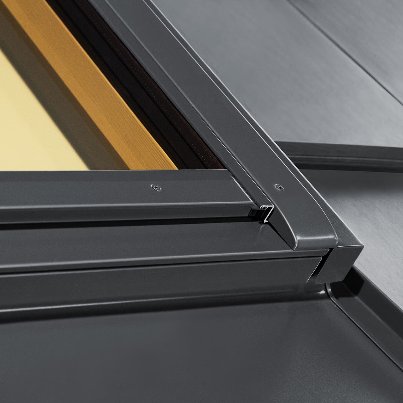 Estetyka to długofalowe wrażenie jakości, które buduje się poprzez konsekwencję i umiar. Okna dachowe GREENVIEW oferowane są standardowo w antracytowym kolorze RAL 7016, idealnie dopasowanym do najpopularniejszych nowoczesnych pokryć dachowych. Spójna kolorystyka oblachowania pozwala stworzyć harmonijną bryłę, przez którą przez wiele lat można podziwiać naturalny, zielony widok. Dodatkowo okna dostępne są także w kolorze szarobrązowym RAL 7022 oraz czarnym RAL 9005, oferowanym z dłuższym terminem realizacji. To estetyka świadomego wyboru, wpisana w architekturę na lata.